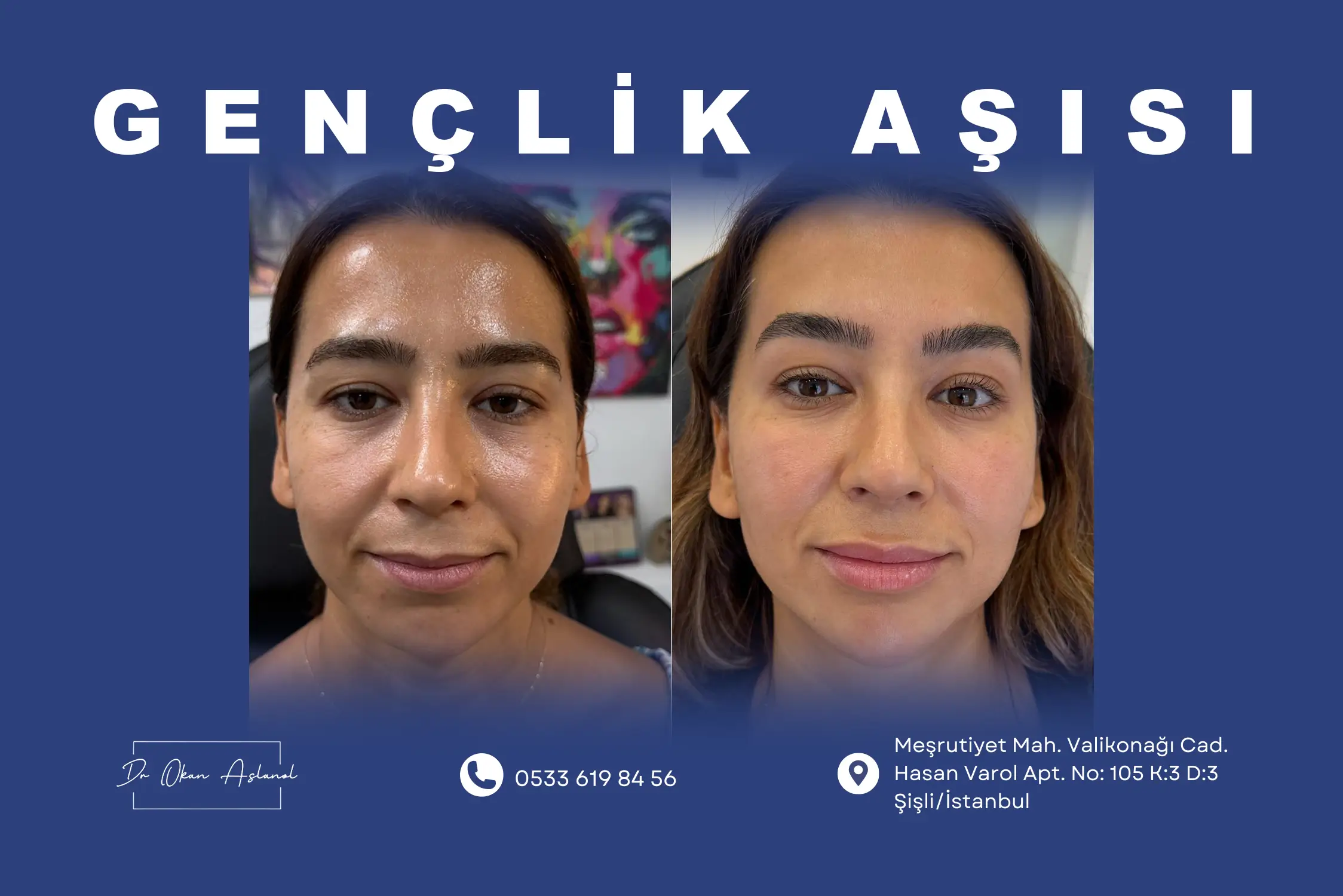 Gençlik aşısı, ciltteki elastikiyet kaybını önlemek, nem dengesini sağlamak ve yaşlanma belirtilerini azaltmak amacıyla uygulanan hyalüronik asit bazlı bir işlemdir. Cilt yenileme süreçlerini hızlandırarak daha canlı ve sağlıklı bir görünüm kazandırır.