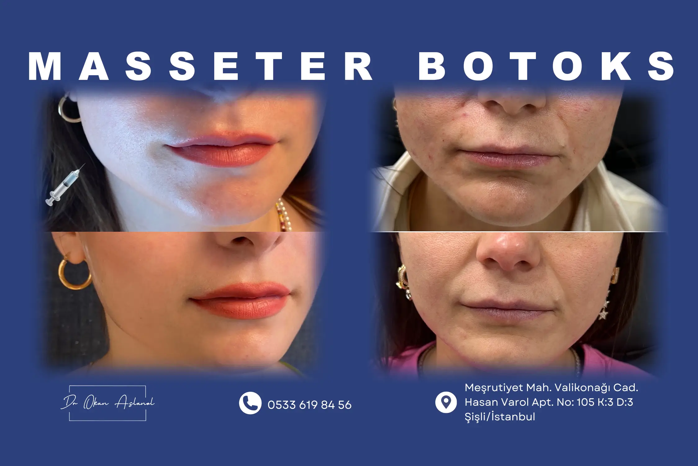 Aşırı gelişmiş ve büyümüş masseter kasının hacmini küçülterek yüzün alt kısmındaki kare/geniş görünümü yumuşatır. Yüze daha ince, zarif ve "V" formunda bir hat kazandırırken, çene hattının (jawline) daha belirgin ve estetik görünmesini sağlar.